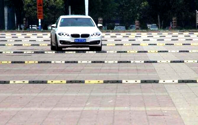 減速帶也叫減速壟,是安裝在公路上使經(jīng)過的車輛減速的交通設(shè)施。形狀一般為條狀,也有點(diǎn)狀的;材質(zhì)主要是橡膠,也有金屬的;一般以黃色黑色相間以引起視覺注意,使路面稍微拱起以達(dá)到車輛減速目的。